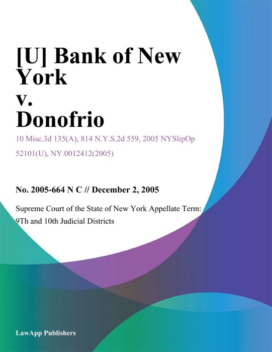 [Download] "Bank of New York v. Donofrio" by Supreme Court of the State of New York Appellate Term: 9Th And 10Th Judicial Districts # Book PDF Kindle ePub Free
